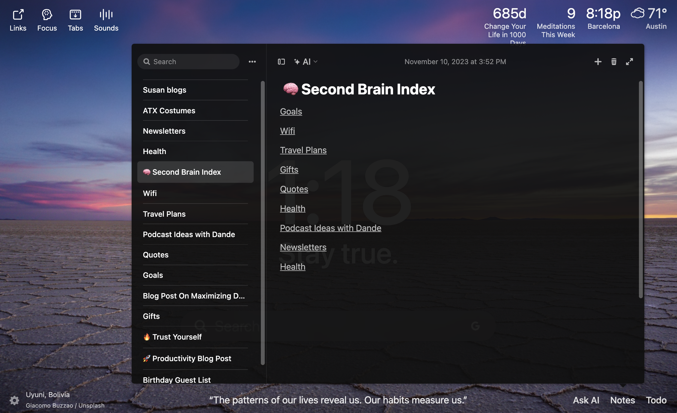 And when it comes to the first step of digital, I prefer to use the Notes feature of Momentum Dashboard.