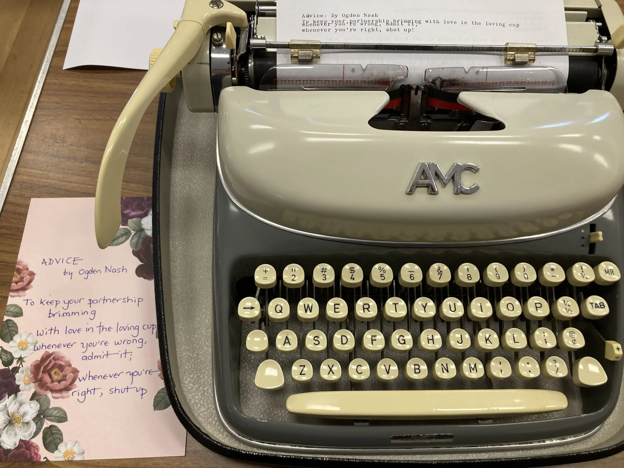 One visitor grabbed a fresh sheet of paper and a quote card from the inspiration basket for me to type while trying out a machine. She and her sister told me about their parents’ green Imperial Good Companion.
